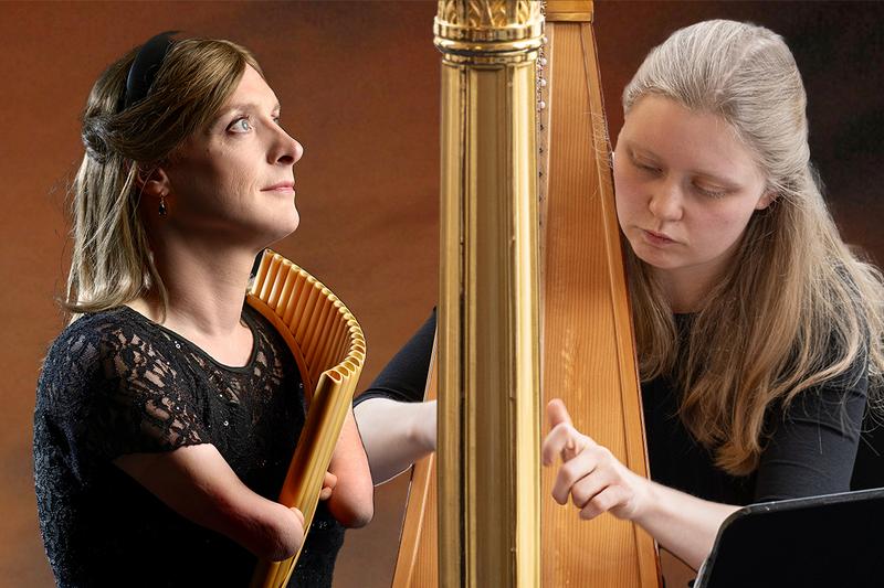 Panflöte musiziert mit Harfe