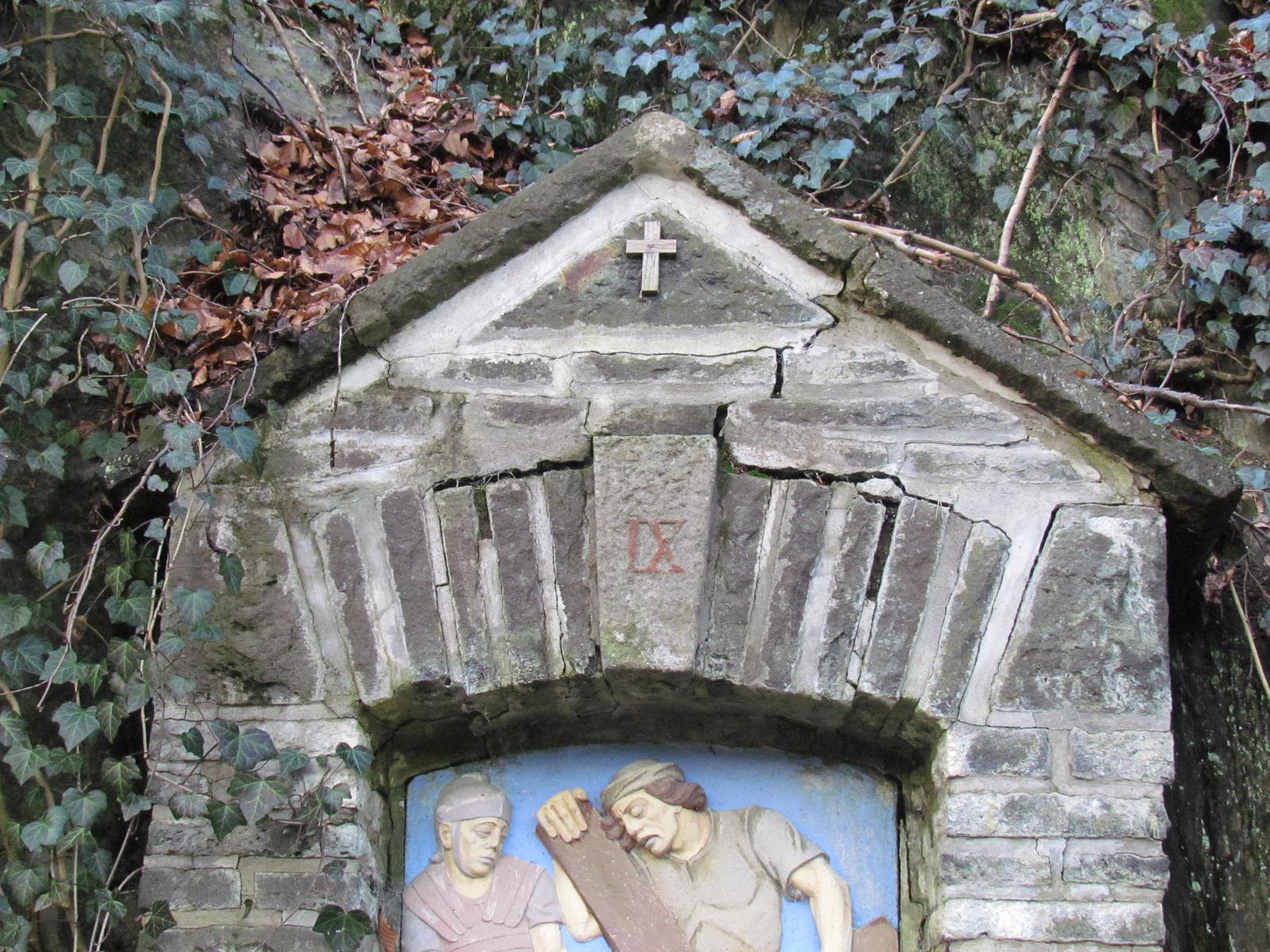 Im Frühjahr hatten wir angekündigt, dass die 9. Station des Großen Kreuzweges, der kurz nach dem 2. Weltkrieg mit allen seinen Leiden und Bedrängnissen entstanden ist, mit Mitteln des Forums Abtei Marienstatt saniert werden soll. Druck vom dahinterliegenden Erdreich und Felsen sowie eindringende Feuchtigkeit hatten zu großen Rissen geführt, die die Stabilität der Station bedrohten.