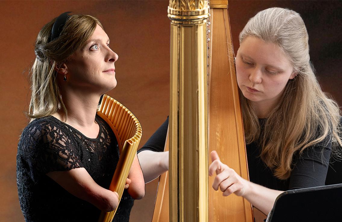 Panflöte und Harfe gehören zu den ältesten Instrumenten der Welt. Die Faszination, die ungebrochen von ihnen ausgeht, gründet in ihrer einzigartigen sphärischen Klangwelt, die den anspruchsvollen Zuhörer im tiefsten Innern berührt. Johanna Ebert studierte in Detmold bei Godelieve Schrama, war Akademistin im Sinfonieorchester Wuppertal und gastierte unter anderem bei den Niederrheinischen Sinfonikern. Hannah Schlubeck gehört mit ihrem Panflöten-Zyklus schon seit vielen Jahren zur festen Tradition in den Marienstatter Abteikonzerten.