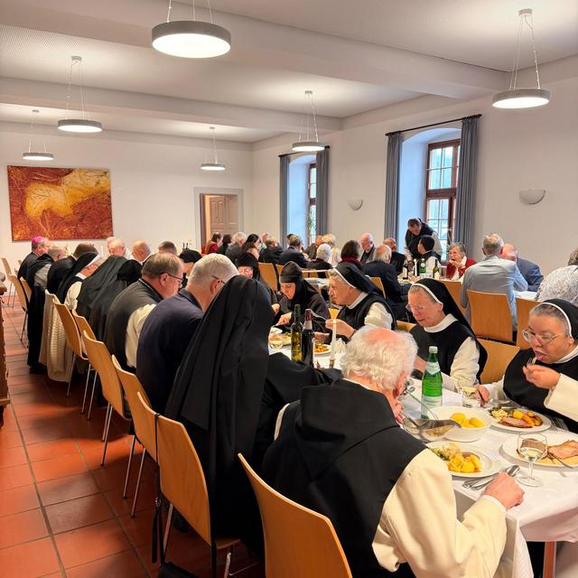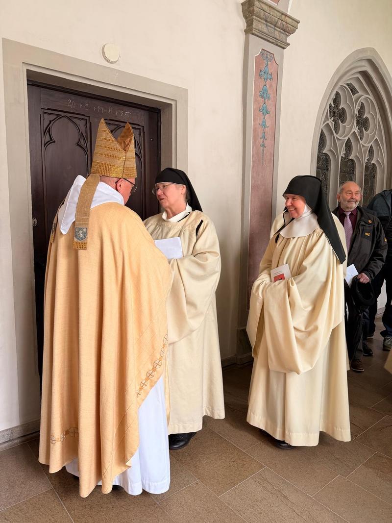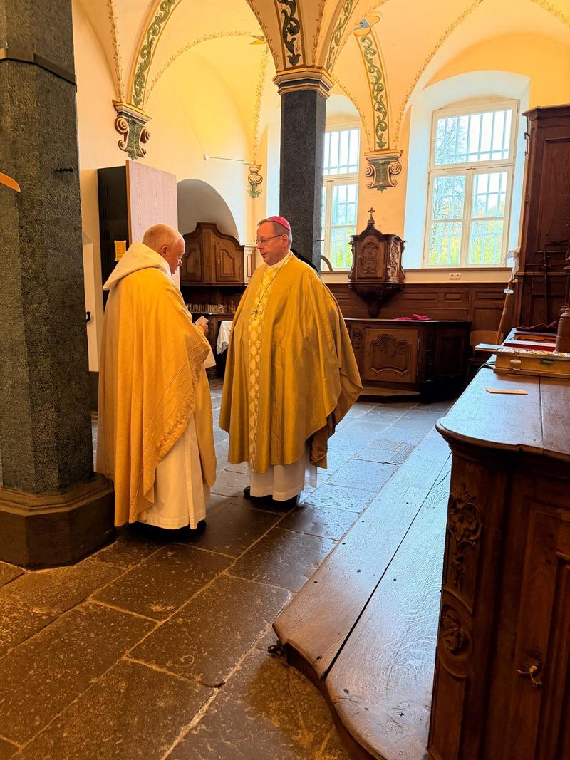 Zum Abschluss bedankte sich Abt Ignatius bei allen Anwesenden, sichtlich gerührt, und lud zum Sektempfang in die Annakapelle ein. Dort sang der Kirchenchor Cäcilia noch ein Ständchen.